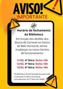 Em razão dos desfiles dos blocos de Carnaval no Centro de Belo Horizonte, a Biblioteca terá alterações no horário de atendimento nos dias: