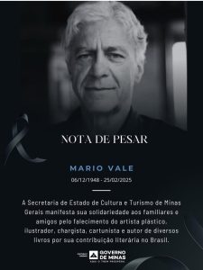 A Biblioteca Pública do Estado de Minas Gerais lamenta o falecimento de Mario Vale, artista mineiro nascido em Belo Horizonte, reconhecido por sua atuação como artista plástico, ilustrador, chargista, cartunista e autor de livros infantis.