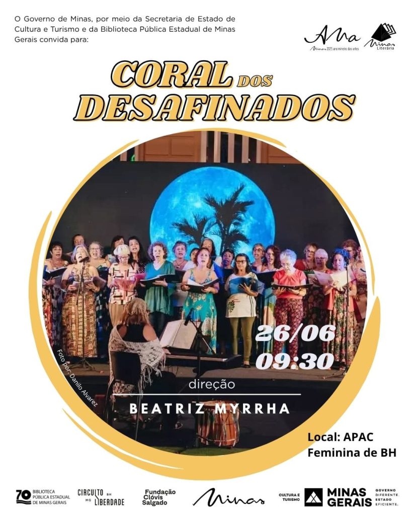No dia 26 de junho, às 9h30, o Coral dos Desafinados leva o espetáculo “Alguém me avisou: um repertório de compositoras brasileiras” até a APAC Feminina de BH, em uma apresentação especial para as reeducandas.